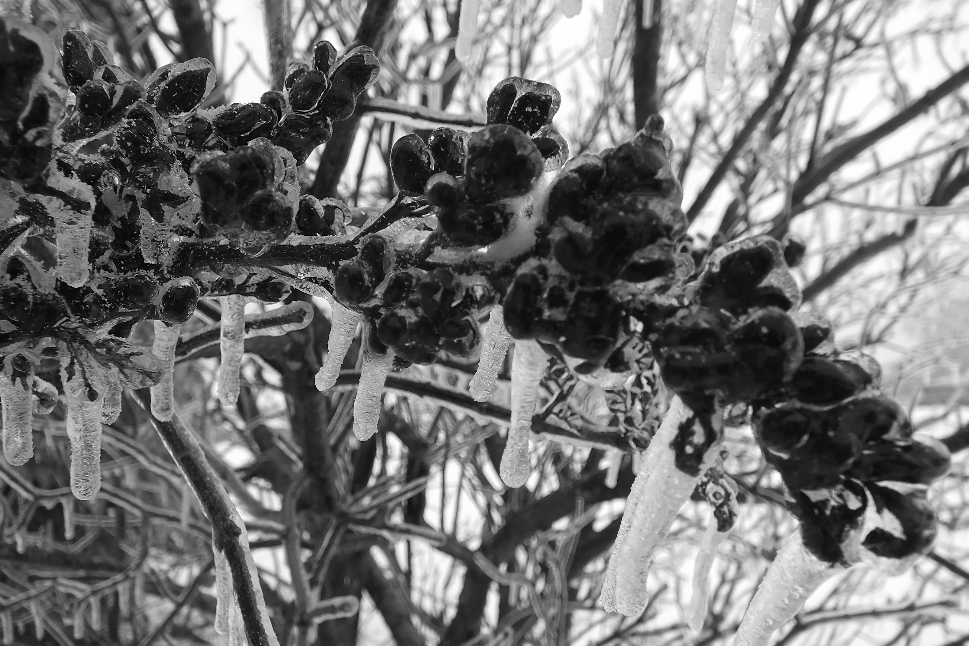 After the fall I was worried that the long white winter, white being the key word, wouldn’t give me much to be inspired to photograph – I was wrong. Yes, photos in the snow are pretty and the colors of hats and gloves and scarves can add to the photos. Horses playing in the snow are fun to photograph – but today when I woke up, it truly was a winter wonderland outside and I bundled up and walked around looking at the amazing ice covered world and found my inspiration. Enjoy!