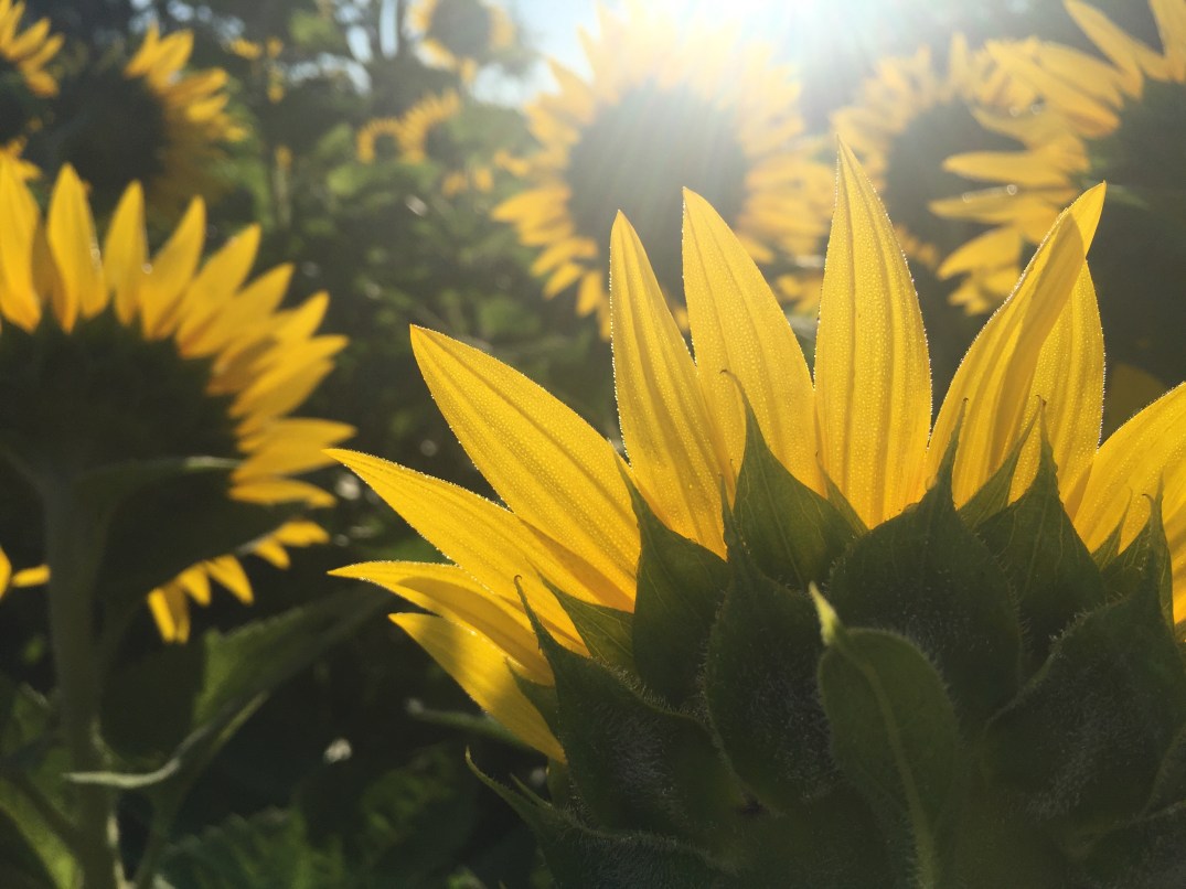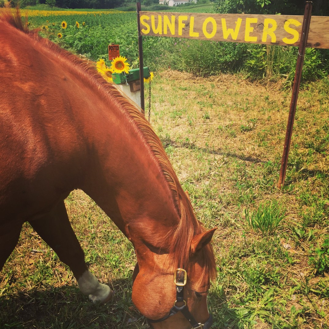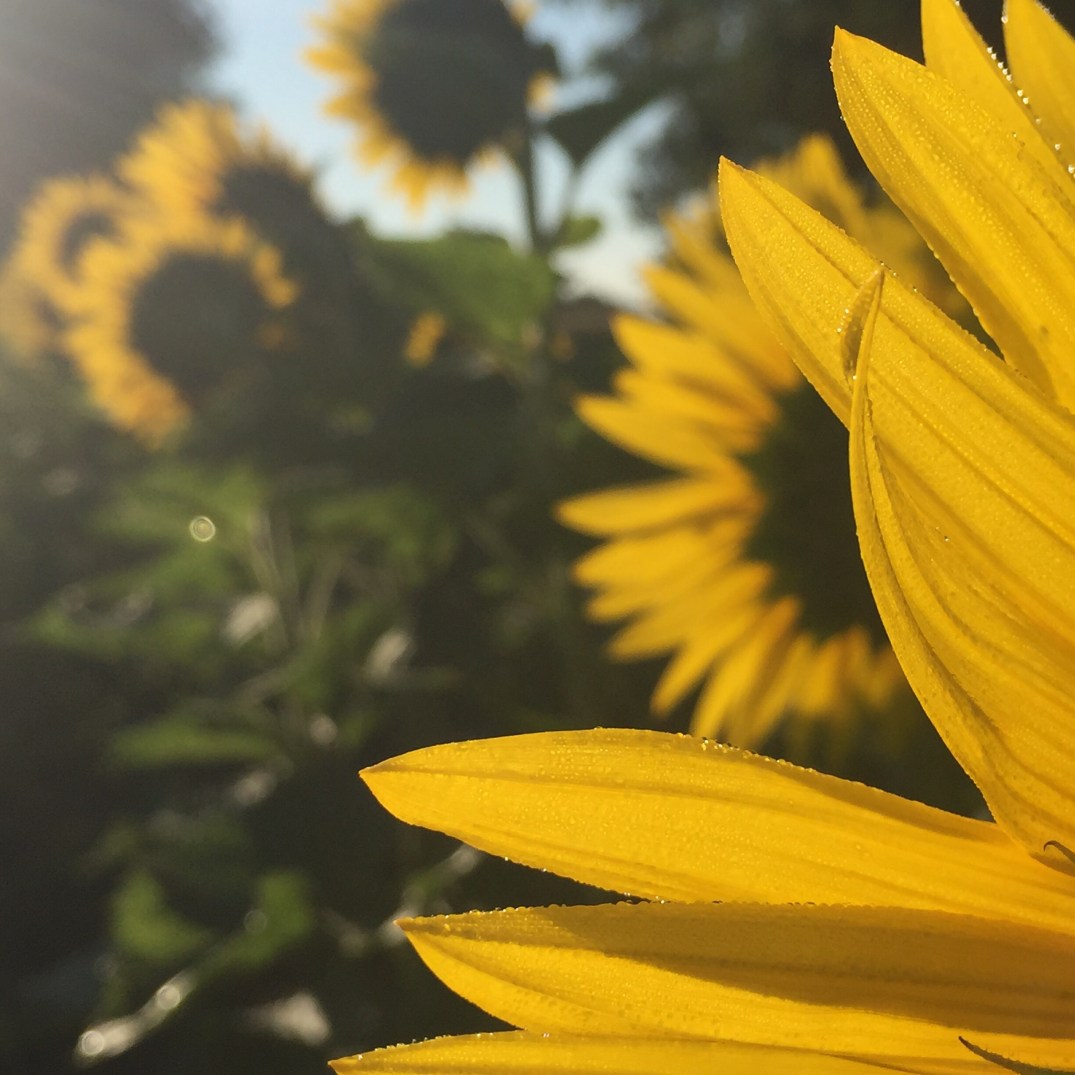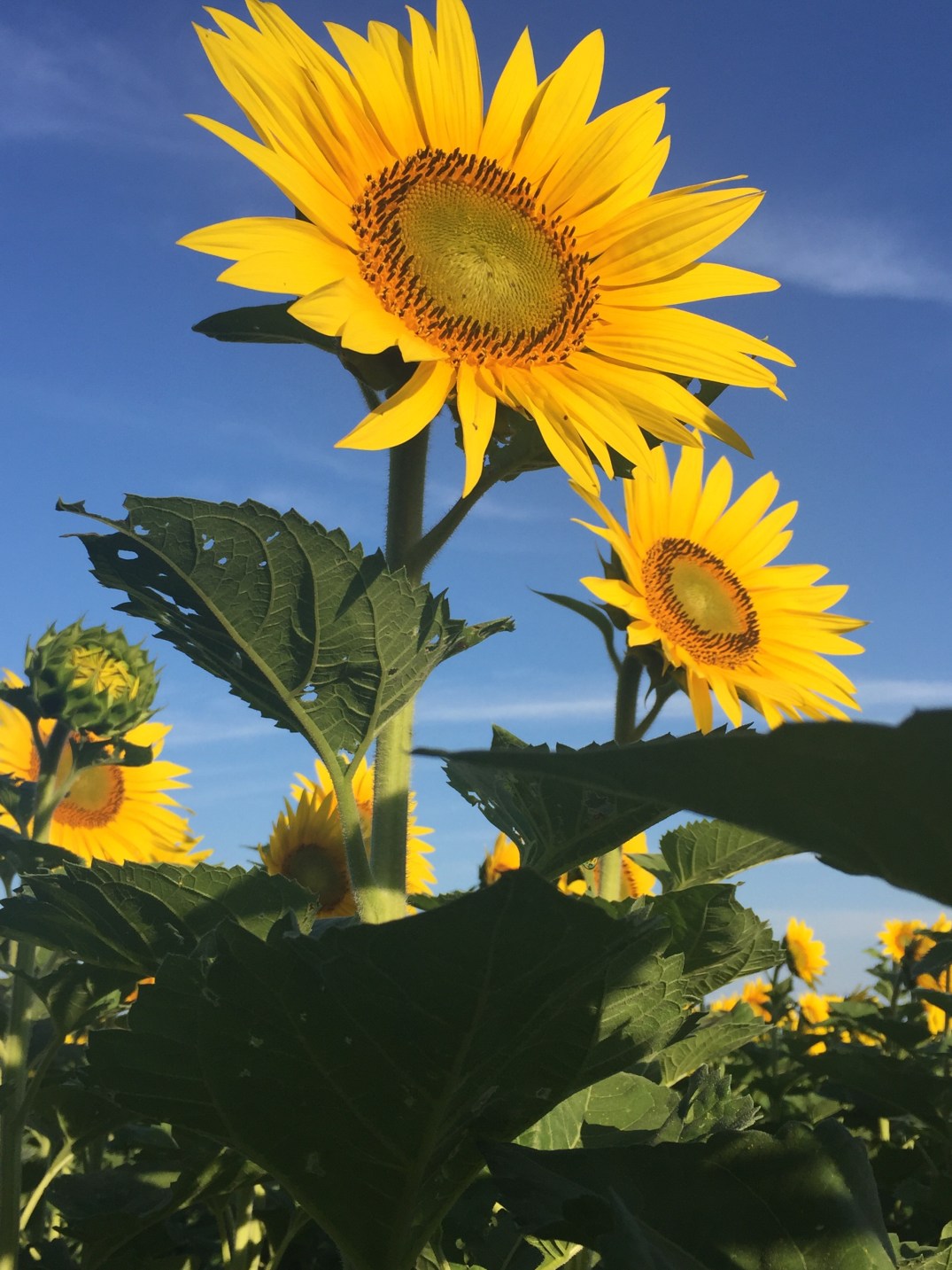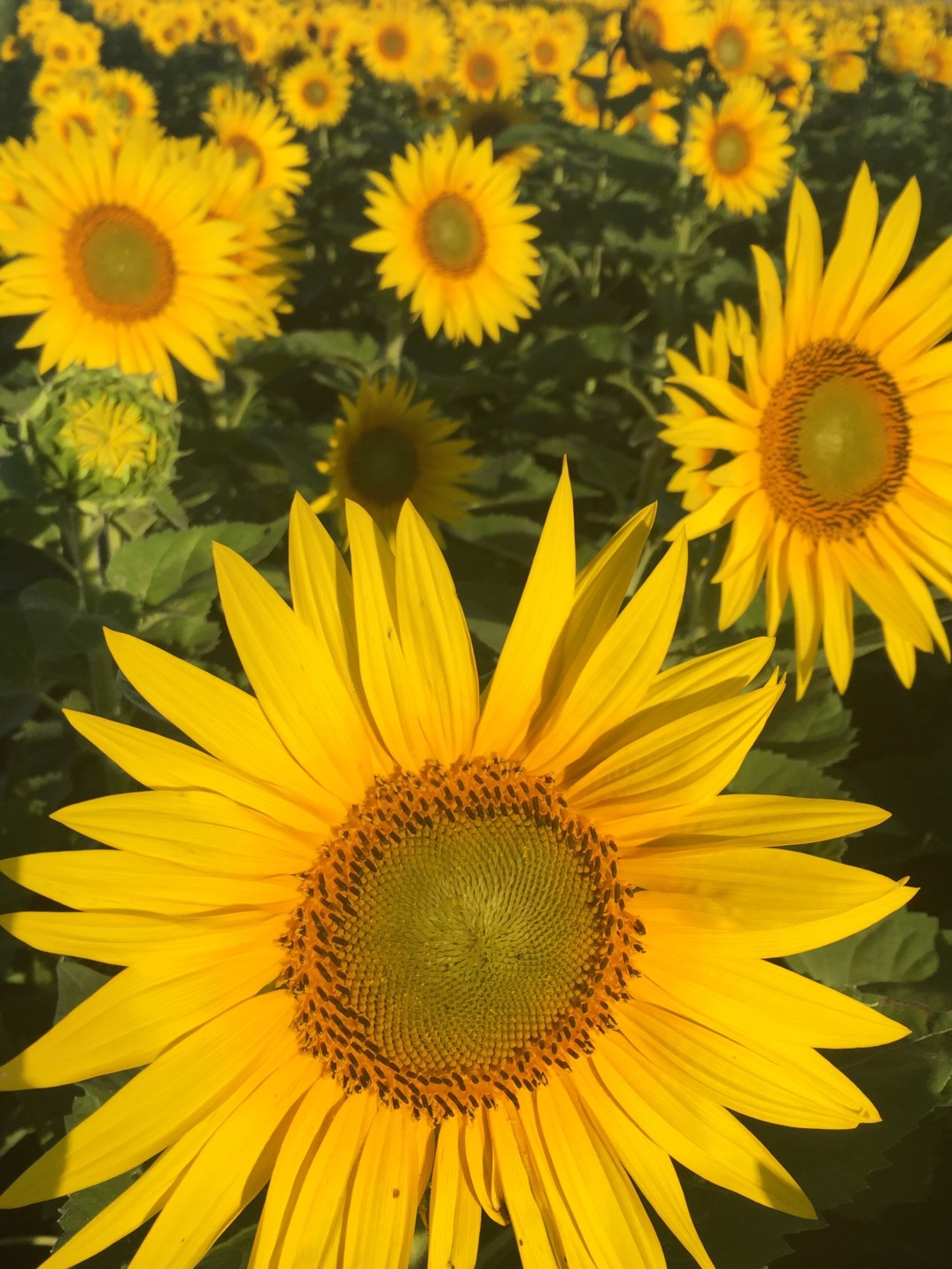 Every year I plant my own little patch of sunflowers – many different varieties. Sometimes the chipmunks eat my seeds before they sprout and sometimes the weather isn’t conducive to growing huge sunflowers- sometimes I’m lucky and sometimes I’m not. I always hope that the farmer down the road plants fields of sunflowers and every few years he does. Boo! for crop rotation and boring feed corn! Yay! For sunflower fields that go on forever! This year I got lucky!