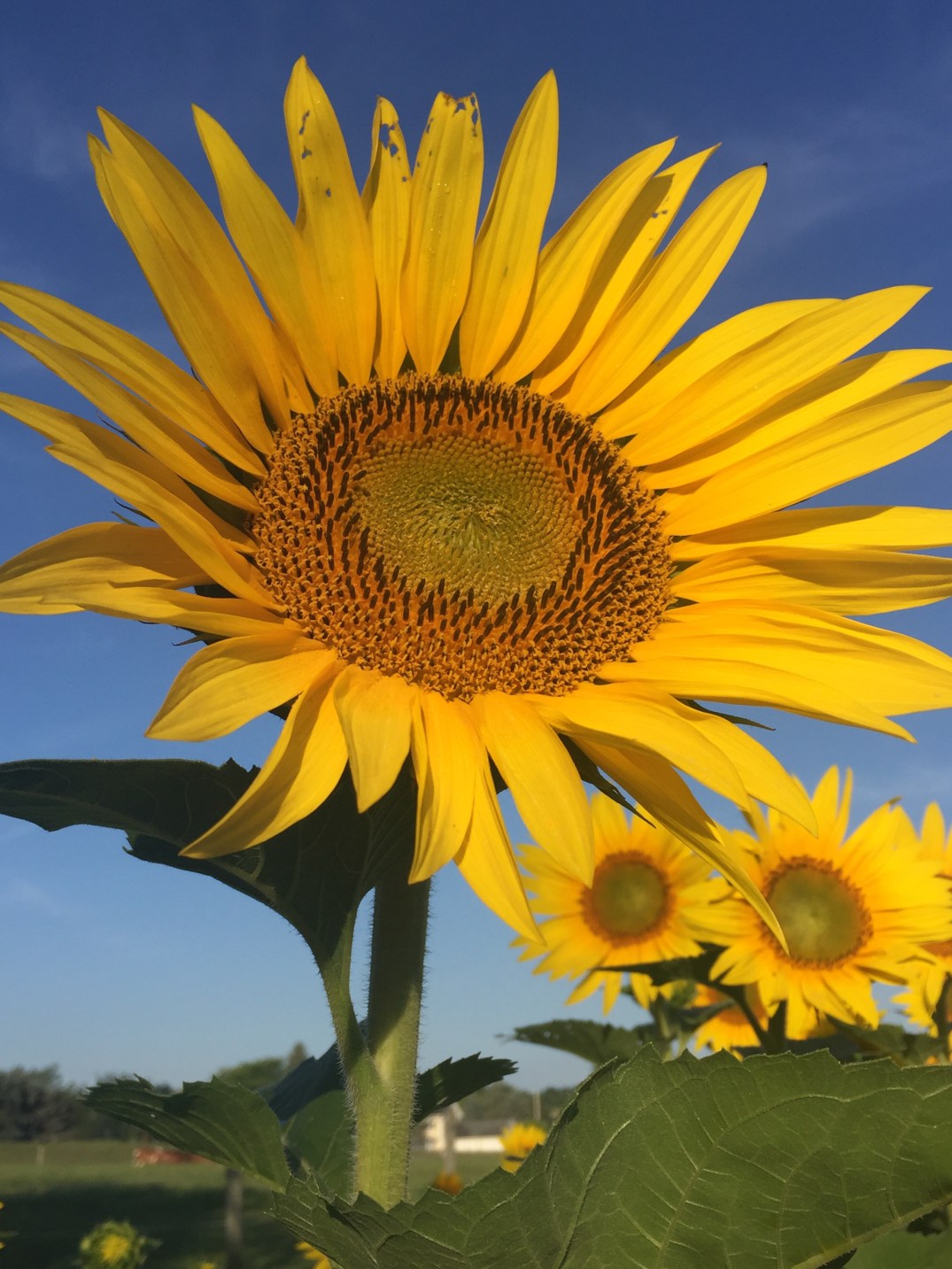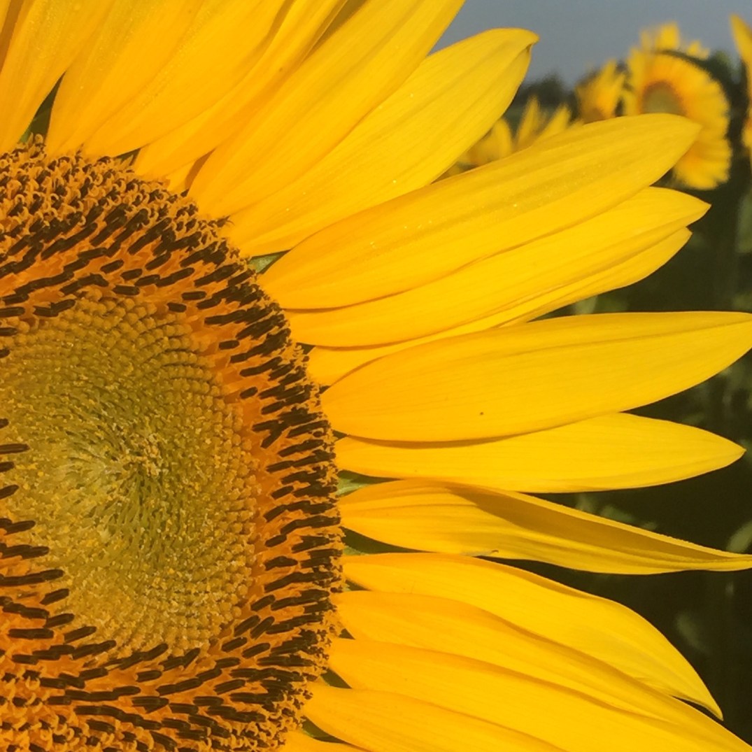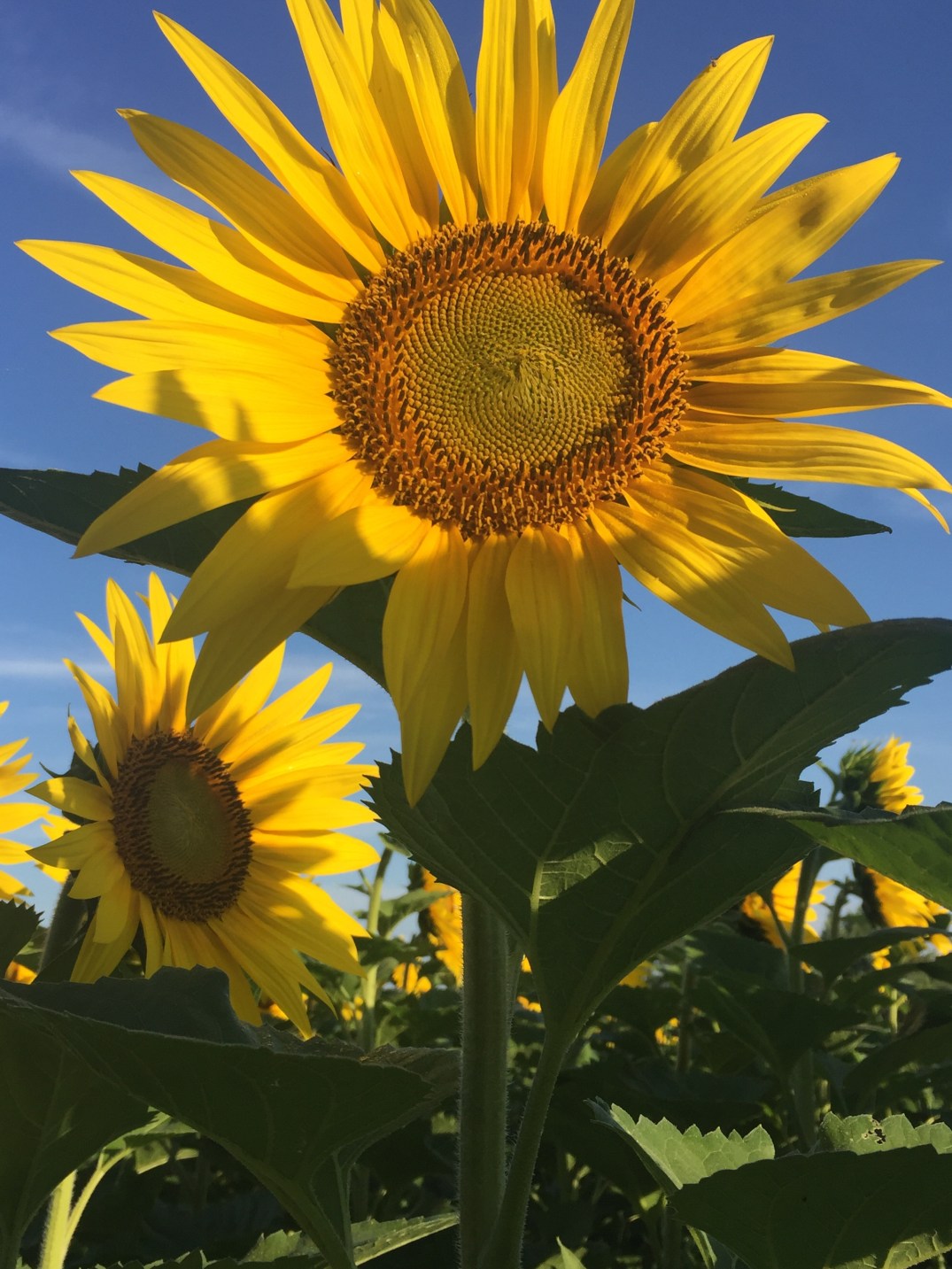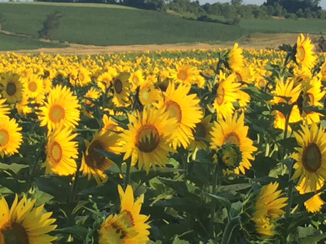 Every year I plant my own little patch of sunflowers – many different varieties. Sometimes the chipmunks eat my seeds before they sprout and sometimes the weather isn’t conducive to growing huge sunflowers- sometimes I’m lucky and sometimes I’m not. I always hope that the farmer down the road plants fields of sunflowers and every few years he does. Boo! for crop rotation and boring feed corn! Yay! For sunflower fields that go on forever! This year I got lucky!